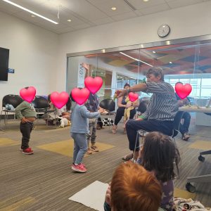 Perhaps it was the humus, perhaps the idea of chowing down on a caterpillar, or perhaps just the end of story time, but that room came alive. Led by the little gang of multiple multiples (Hayley Koster’s two sets of twins), they ran, two-by-two, around the room, laughing. The energy was palpable. For that is what laughter does. It lightens the load by bringing joy to the heart. And we can always trust children to choose it.